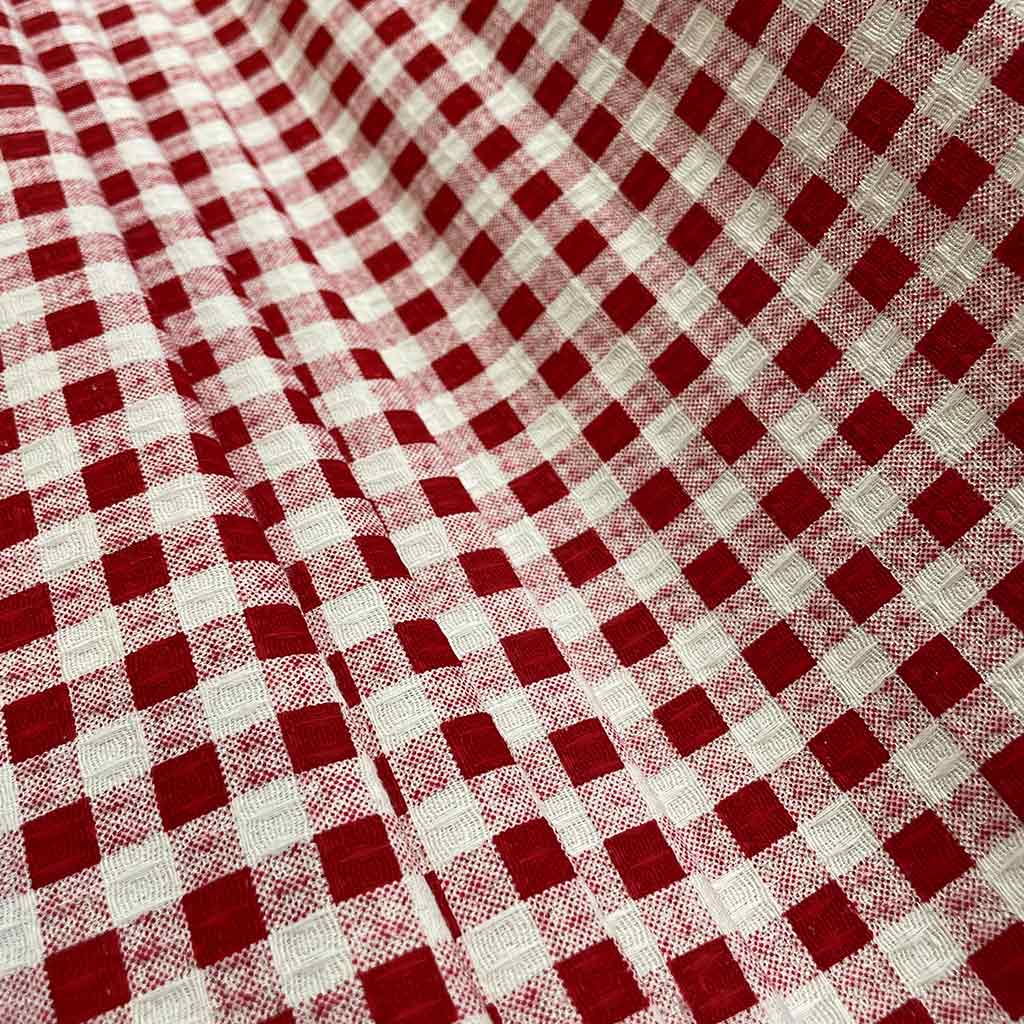 پارچه آشپزخانه ای طرح 4 خانه قرمز