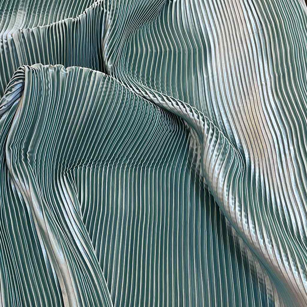 پارچه ساتن پلیسه سبزآبی کم رنگ