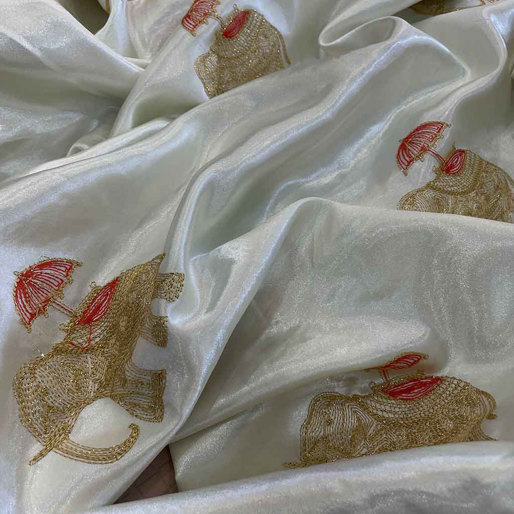 پارچه سوزن دوزی طرح فیل سفید