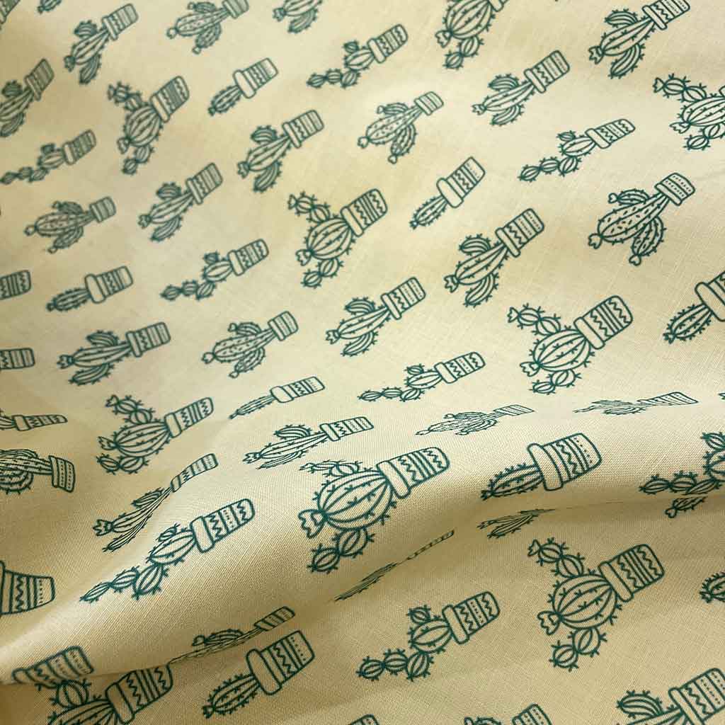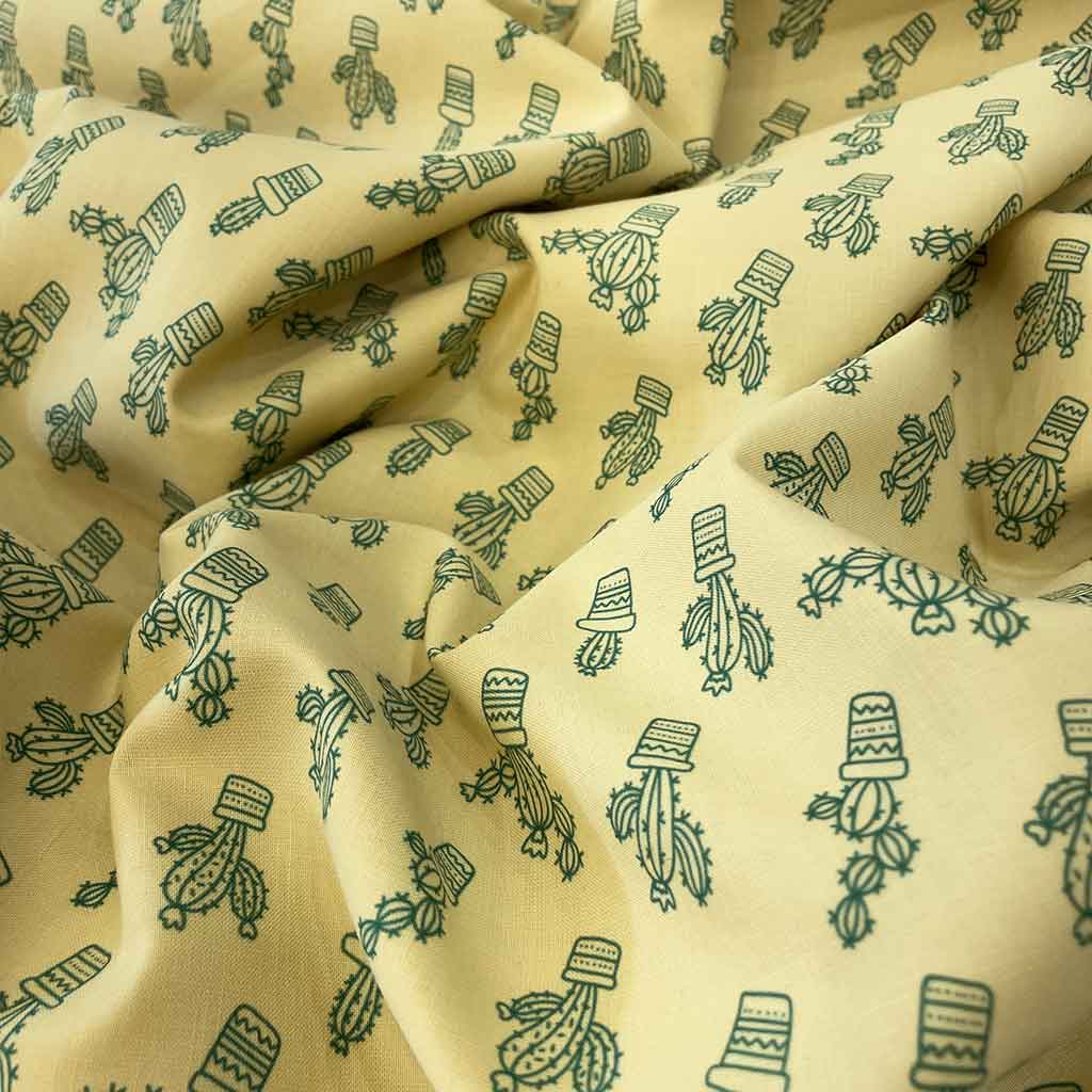 پارچه لنین فانتزی طرح کاکتوس سبز