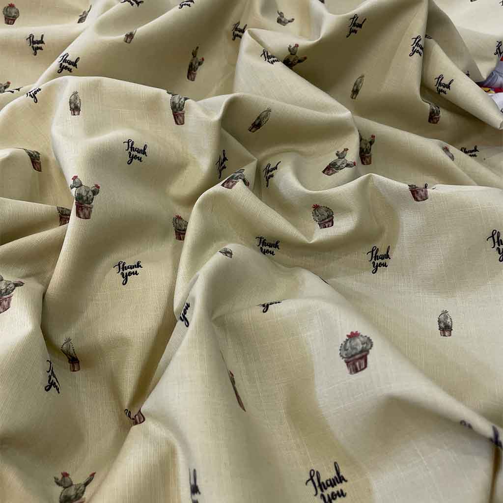 پارچه لنین فانتزی طرح گلدان کاکتوس
