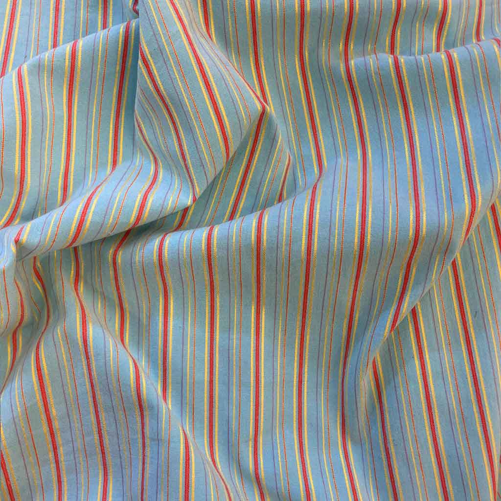 پارچه نخی آبی کم رنگ طرح خط قرمز