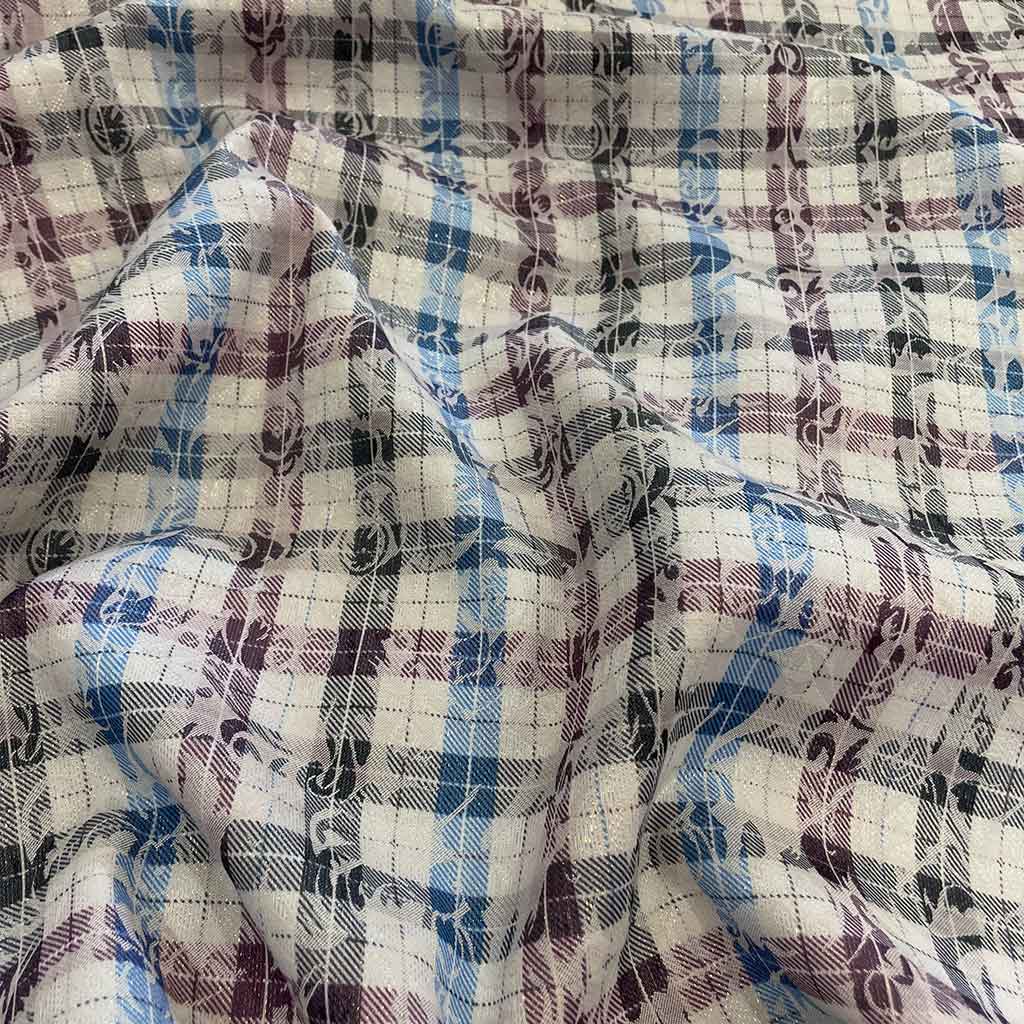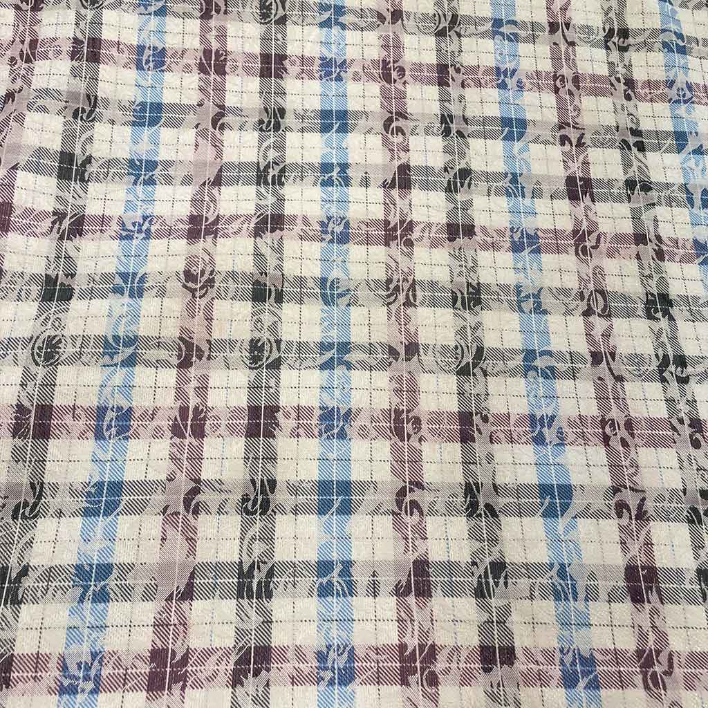 پارچه ژاکارد طرحدار خطی آبی قرمز